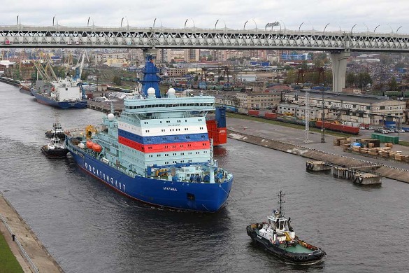 Гигант длиной 173 м с водоизмещением 44 540 тонн рассчитан на 40 лет службы. Его уникальная двухреакторная система позволяет прокладывать маршруты для крупнотоннажных судов не только в Арктике, но и на мелководье полярных рек. Это наследие легендарного предшественника — первого судна, покорившего полюс в 1977 году.
