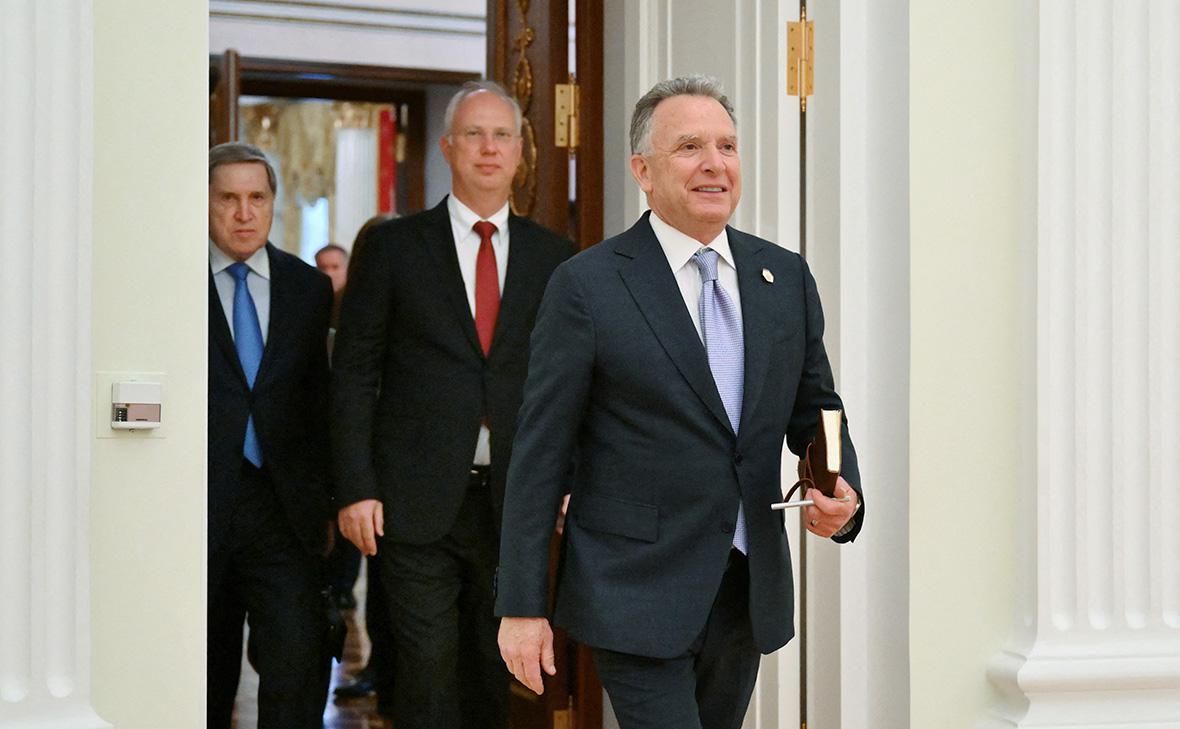 Юрий Ушаков, Кирилл Дмитриев и Стив Уиткофф Фото: Кристина Кормилицына / Sputnik / Reuters