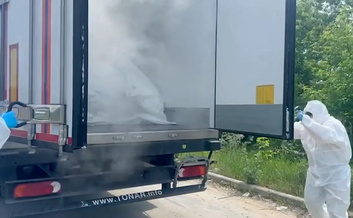 Рефрижератор с телами погибших украинских военнослужащих в Брянской области, 8 июня 2025 года Фото: Министерство обороны России / Reuters