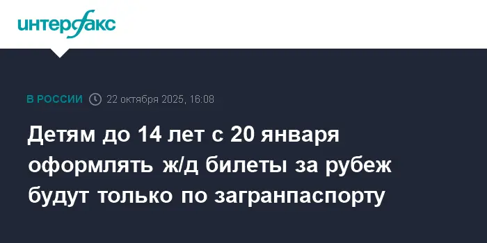 С 20 января 2026 года при оформлении железнодорожных билетов за границу для юных путешественников до 14 лет будет обязательным предъявление заграничного паспорта. Прежний вариант со свидетельством о рождении для таких поездок станет недоступным.